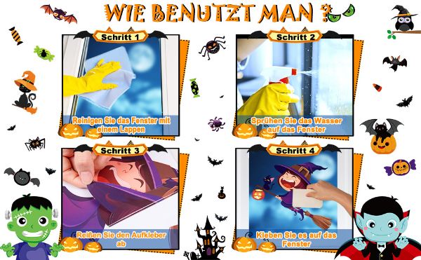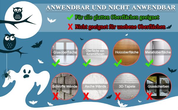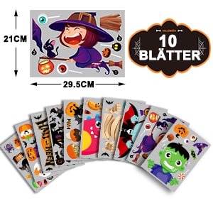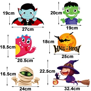 • Dimensioni: adesivi per finestre di Halloween, composti da 10 adesivi, ciascuno di 21 x 29,5 cm