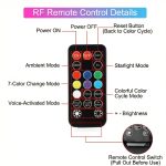 Funzioni telecomando: 18 pulsanti – on/off, selezione colore, luminosità +/-, breathing, ciclo a 7 colori, strobo, ambient, star, reazione al suono, reset