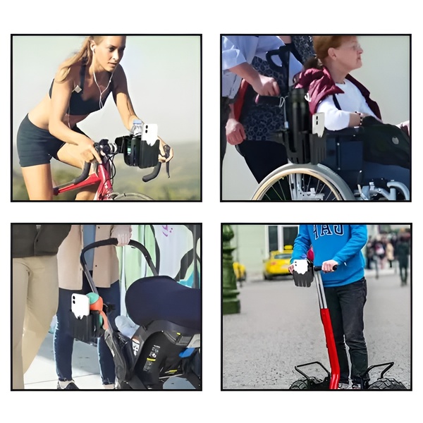 BIKECUP si adatta facilmente a vari tipi di manubrio, mantenendo i vostri oggetti essenziali accessibili e sicuri ovunque andiate.