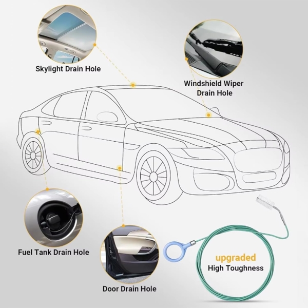 Ideale per pulire gli scarichi del tetto apribile e dei tergicristalli, prevenendo costose perdite e danni interni causati dall’acqua.